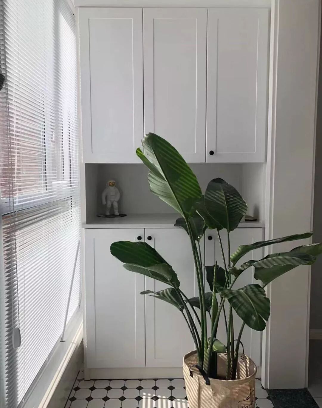 北欧客厅之阳台篇:天堂鸟绿植,真的很喜欢阳光透过百叶窗的那种自然光影,真的很惬意。
