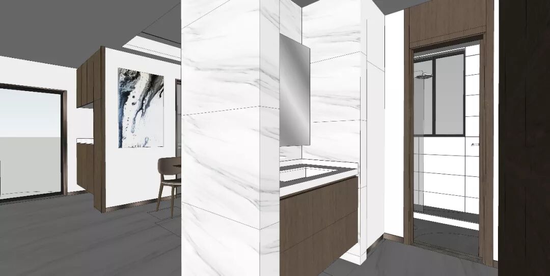 女主人对于爵士白石材的纹理的热衷偏爱让伊空把理念设计化为实际的最大支持,既然有缘遇到这么好的女主人和这么有质感的瓷砖,那我们的存在的意义就是让美进行到底!!(敲黑板特别提醒:房屋主人对设计理念的理解和支持真的对后期实际效果的实现起着至关重要的作用!)