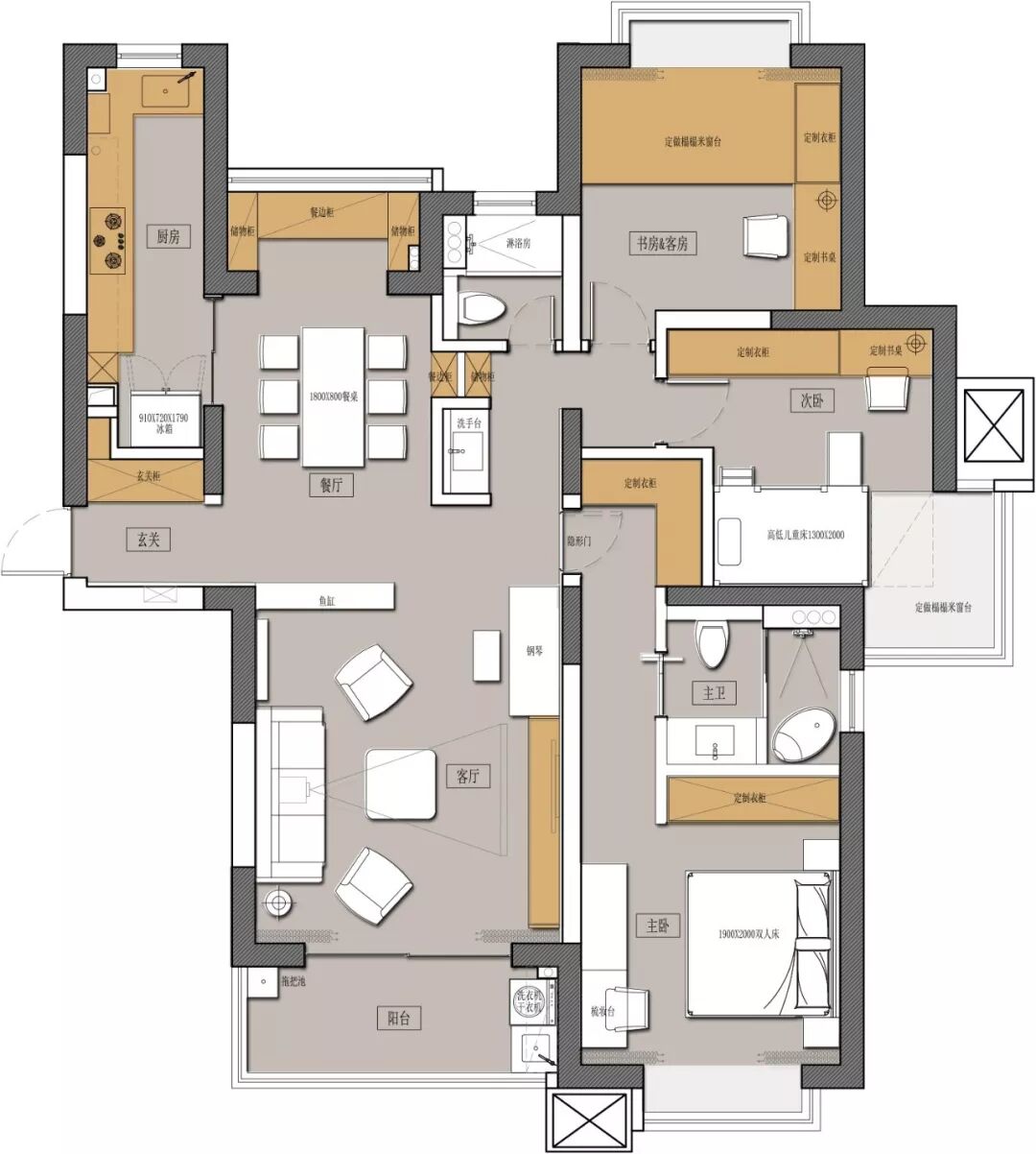 装修需求:屋主理想的装修风格是现代大气,以满足活跃的社交需求。同时兼顾小朋友在钢琴、文学方面的需求。