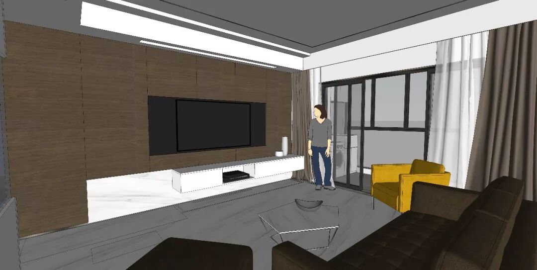 在综合客厅的面积和保证阻碍家人行走的条件下,伊空充分结合客厅电视背景墙造型给培养兴趣爱好预留了空间。