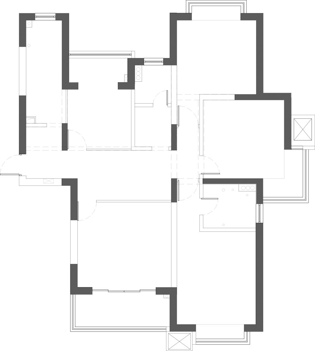 设计优化之后的户型图(解决方案) 首先要解决的是屋子存在的采光、空间利用等问题: