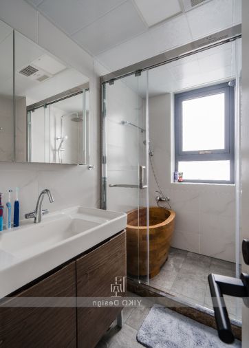打破餐厅与卫生间的原有格局,将卫生间进行干湿分离,同时也在洗手台的背面增加了餐边柜的储物功能,尽可能地充分利用每一处空间,保证空间利用率的同时,也考虑到实用和美观等其他因素(此处是不是应该有掌声啊!!??)